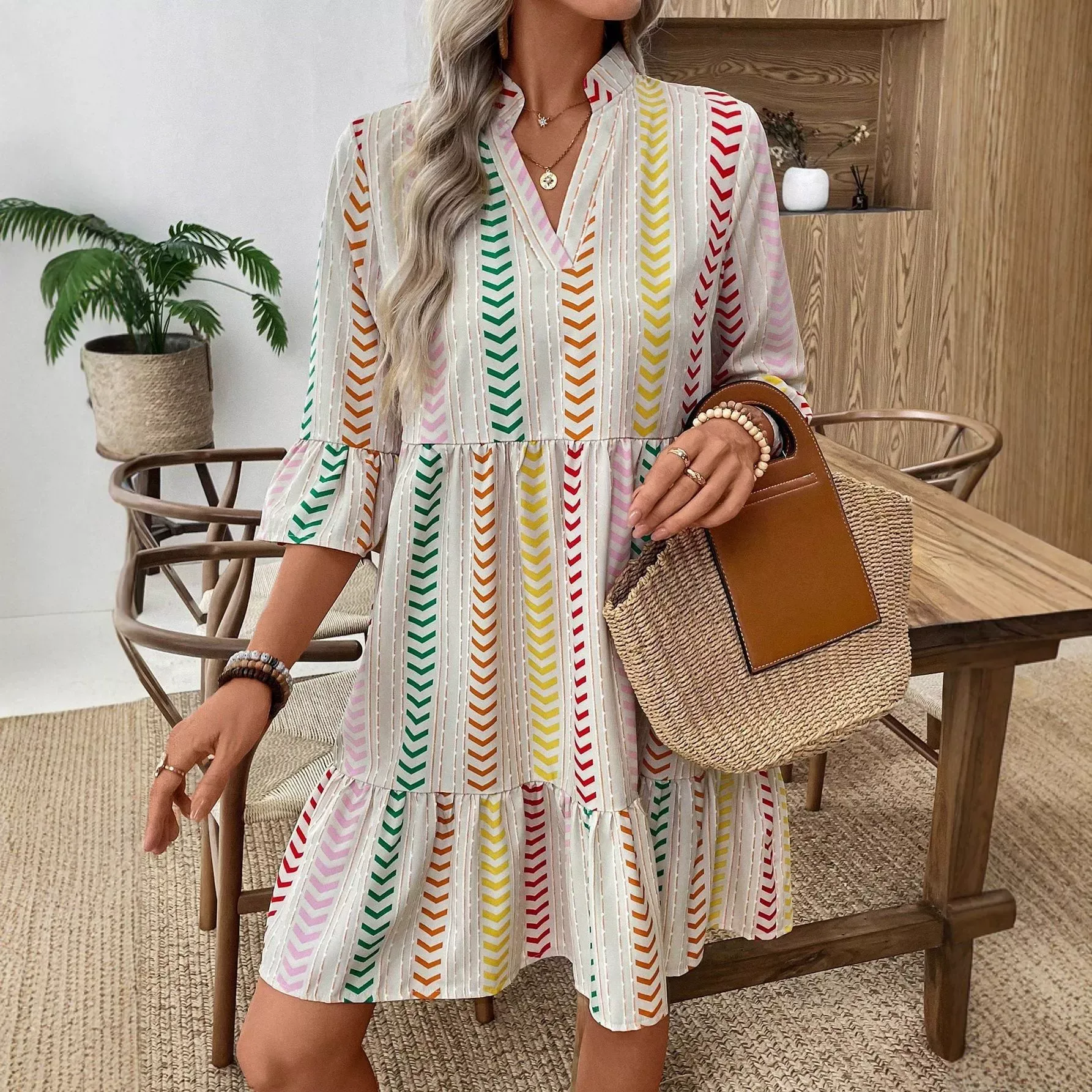 Bohemian Holiday Style Printed Swing Dress